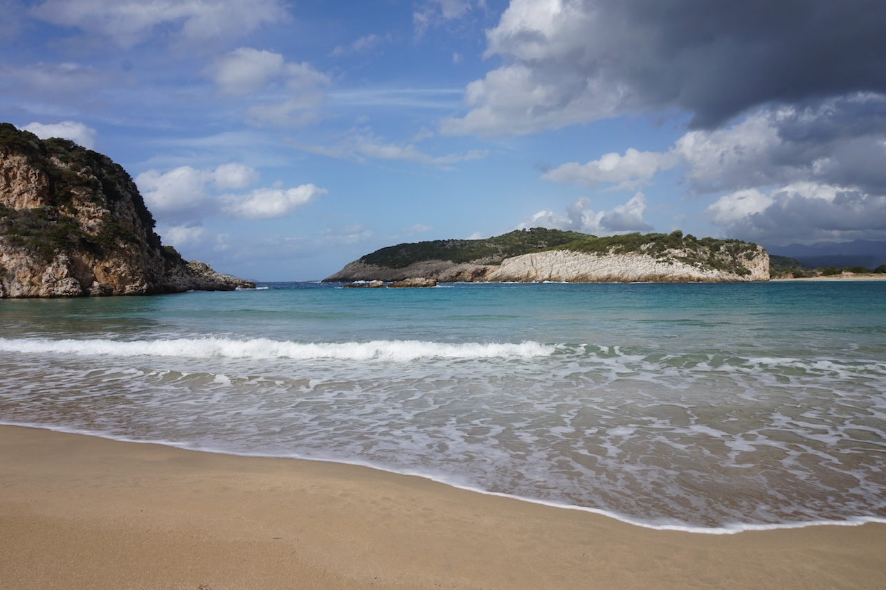 After some discussions, we decided not to camp next to the beach this time, but to spend a good chunk of the day in this idyllic location. As we arrived, we saw an almost empty beach with bright blue water and waves coming in at an entirely perfect half circle.
